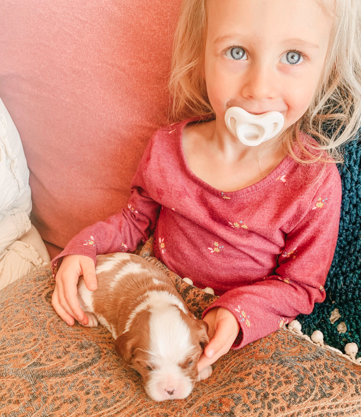 Our Cavaliers get to grow up in an environment where they are loved on by our family. Ages range from adults to young children and babies. They love to be a part of everything we do whether it is farm chores, family hikes, road trips across the country, or just snuggling on the couch.